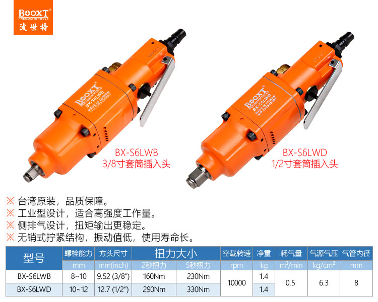 東莞市強(qiáng)勁五金工具有限公司提供臺灣BOOXT波世特品牌氣動工具,直柄氣動扳手BX-S6LWB廠家直銷,首件享特價(jià)。咨詢熱線:4008301980